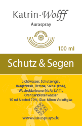 Die Aurasprays unterstützen uns in der Zeitqualität und sind kleine Energieduschen im Alltag. Anwendung: Das Spray in die Aura über unserem Kopf wie einen kleinen feinen Nebel einmal um uns herum, vorn und hinten einsprühen. Weniger ist mehr, im Normalfall reicht 1-2 mal am Tag. Bei Bedarf auch öfter. Immer nur eine Sorte von Spray auf einmal verwenden. Mit Ausnahme von Schutz & Segen: Diesen bei Bedarf. Schutz&Segen kann nach einer kurzen Pause auch mit einem der anderen Sprays kombiniert werden und klärt auch gut den Raum. Die ätherischen Öle sind hochwertige Naturprodukte, nach Möglichkeit aus kontrolliert biologischem Anbau und unterliegen normalen Schwankungen von Ernte und Intensitivität.